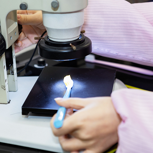 Gelişmiş ekipman ve tam montaj hatları ile donatılmış yüksek standartlı bir fabrika ile, tüm üretim hattını yüksek derecede otomasyon ve büyük üretim kapasitesi ile bağımsız olarak tamamlayabiliriz. Günde 2 milyon diş fırçası üretebilir ve büyük hacimli siparişlerle başa çıkabiliriz.